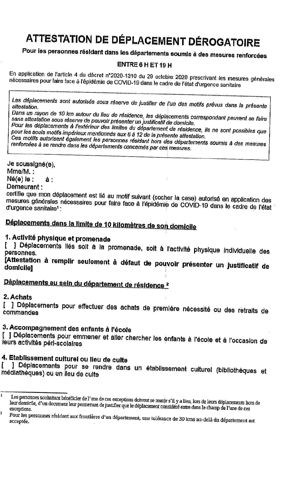 Attestation à télécharger